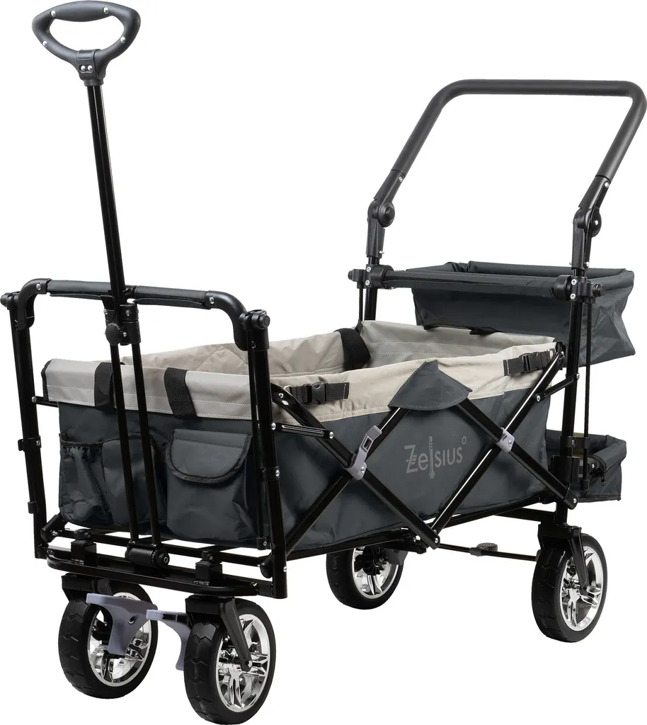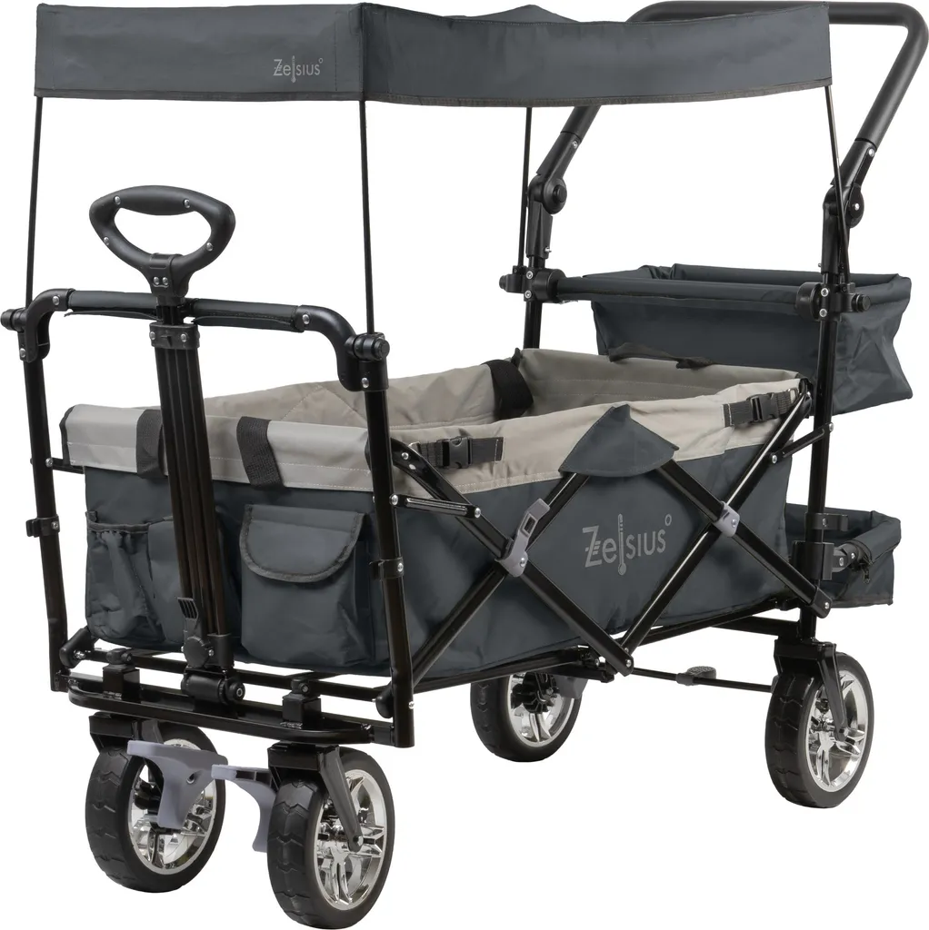 Skladací ručný vozík so strechou je praktický skladací ručný vozík, ktorý je ideálny na výjazdy do prírody, kempovanie, pláž, nákupy alebo inú prepravu ťažších alebo objemných vecí.